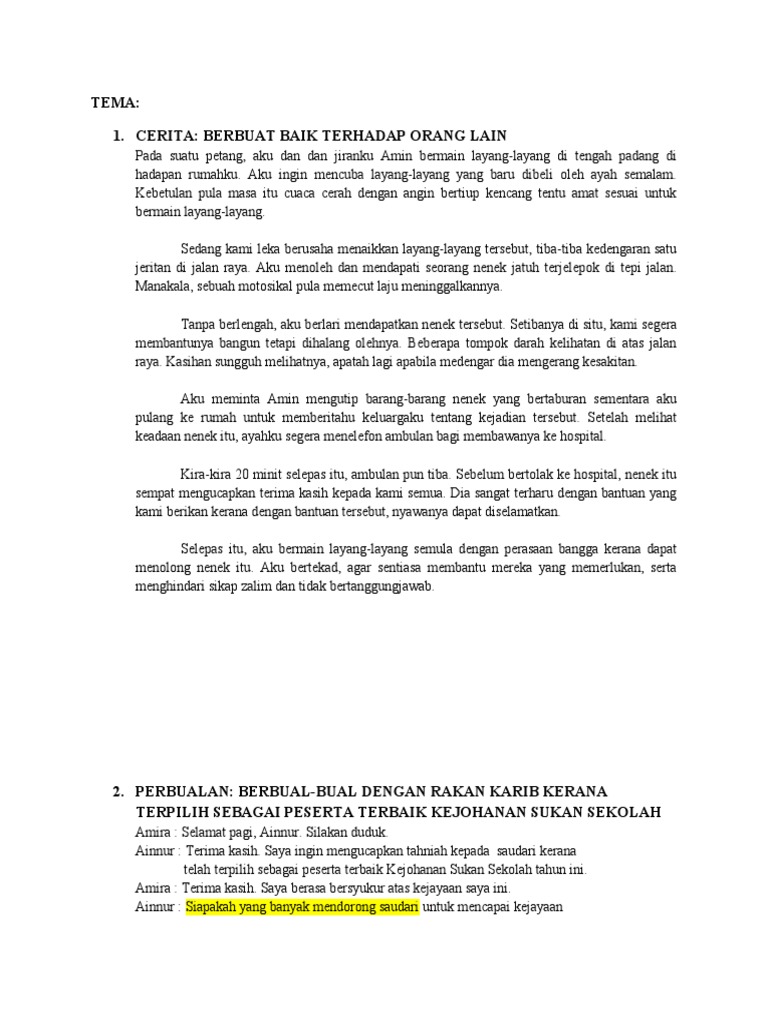 Semangat ini lahir daripada kesedaran dan inisiatif kita untuk mewujudkannya. Cerita tolong menolong sesama teman. Tanggungjawab anak menghormati ibu bapa.